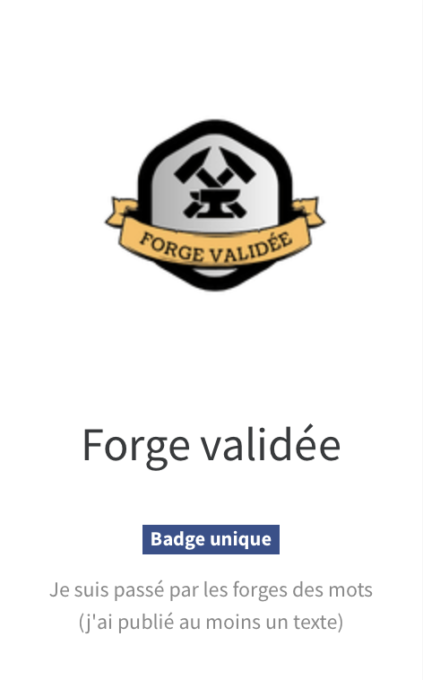 Si vous passez par la forge des mots, vous débloquerez un nouveau badge.