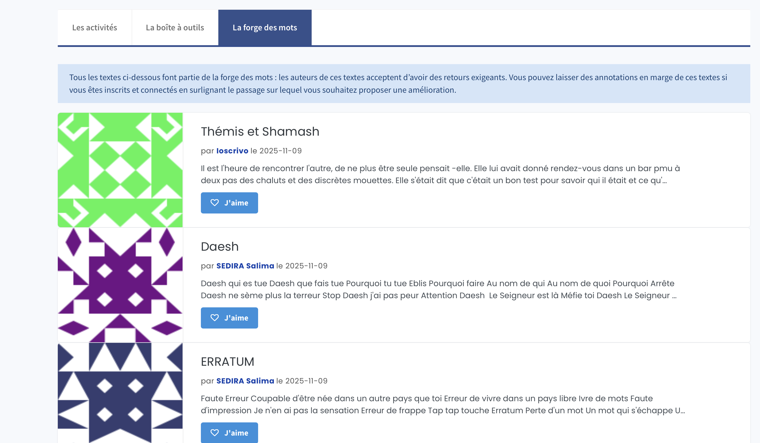 Vos textes sont désormais présents dans le fil de lecture dédié à la forge des mots.